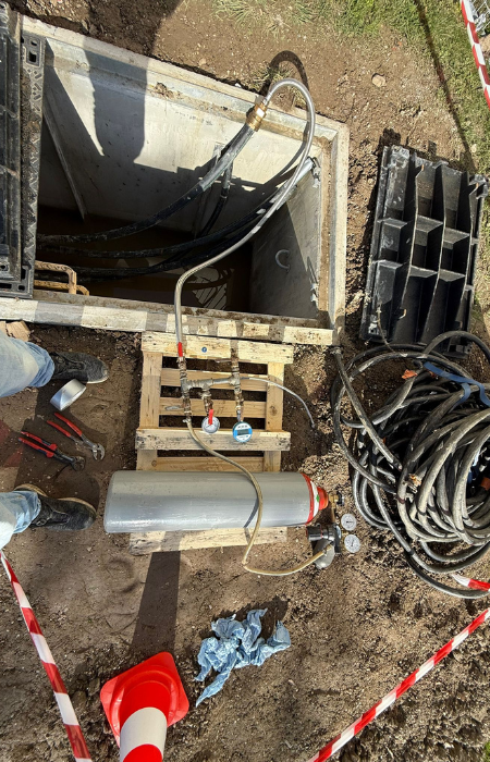 Gaz traceur (si nécessaire selon configuration) : injection d’un gaz léger dans la conduite, détectable en surface même à travers plusieurs couches de sol.